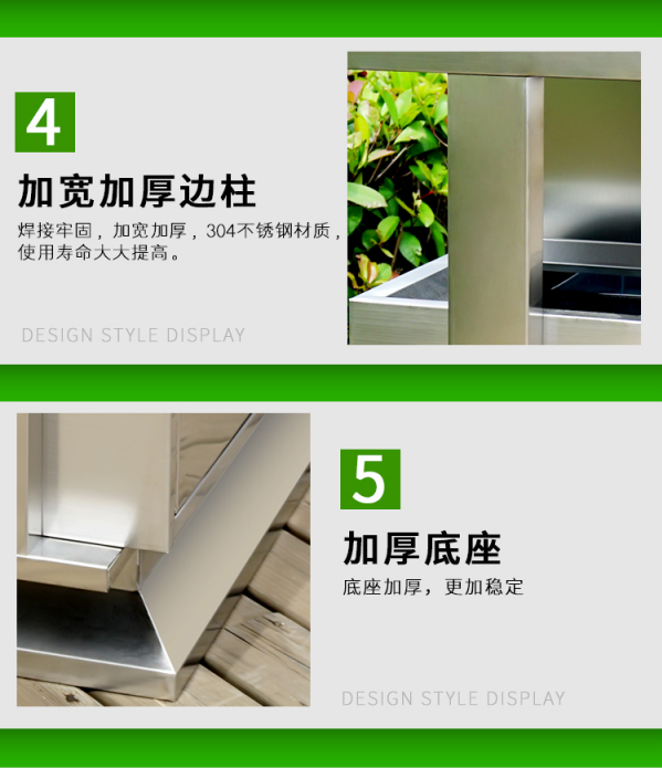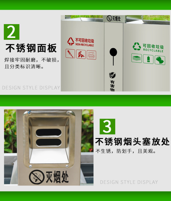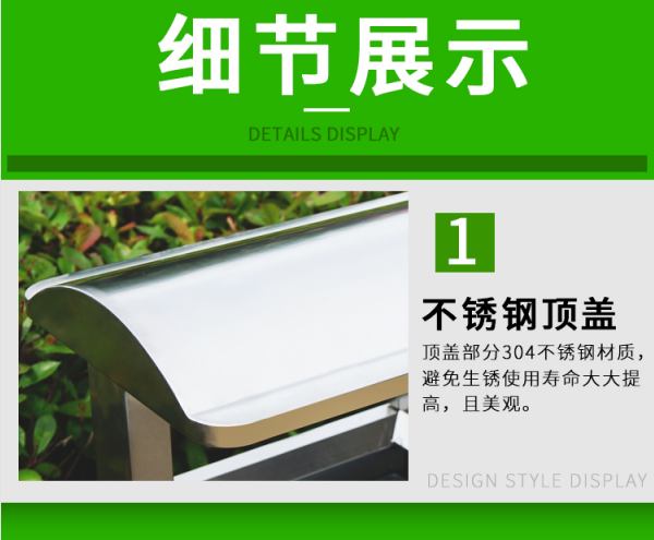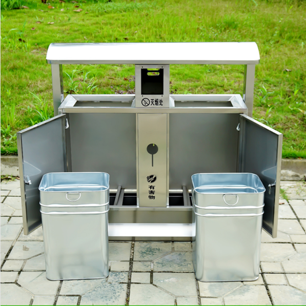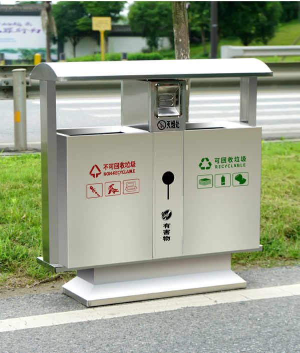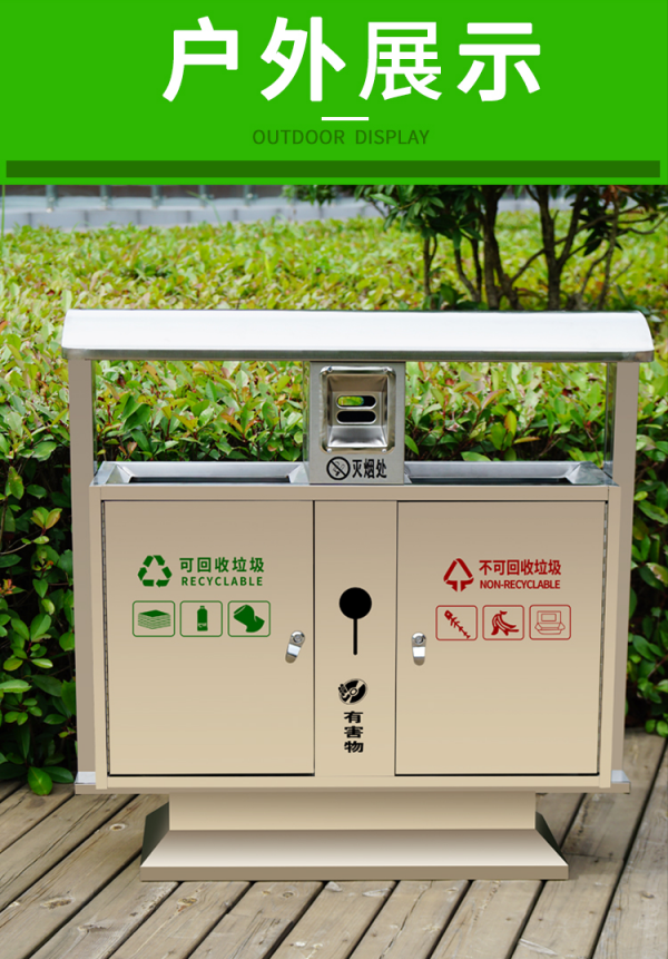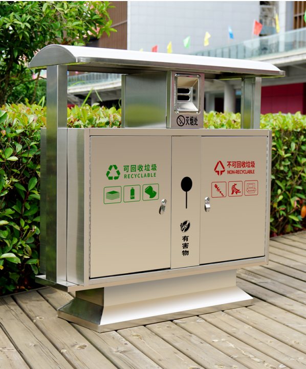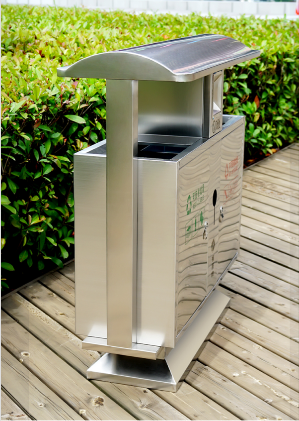 不銹鋼垃圾桶HT-BXG1080,該產(chǎn)品整體采用優(yōu)質(zhì)的不銹鋼鋼板生產(chǎn)加工而成,產(chǎn)品顏色為:原色,規(guī)格為長1000mm寬380mm高1000mm,本款戶外不銹鋼分類垃圾箱采用模具沖壓或折邊拼焊成型;表面處理有鏡面與砂面兩種.金屬框架選用高品質(zhì)鋼板折邊拼焊成型,表面防銹處理后經(jīng)戶外粉末噴涂;木材經(jīng)烘干、打磨、倒角、防腐處理后表面噴涂進(jìn)口抗紫外線聚脂漆.生產(chǎn)工藝:不銹鋼垃圾桶選用優(yōu)質(zhì)不銹鋼經(jīng)下料—折合—壓筋—沖孔―成型,氬氟焊、打磨、拋光、打臘.頂蓋采用滾壓成型技術(shù),HT-BXG1080不銹鋼垃圾桶也可按照您的具體需求可定制尺寸和顏色,可印制LOGO及文字,詳見說明或咨詢客服.環(huán)泰愿為環(huán)保護(hù)航,一切為您,放心采購。