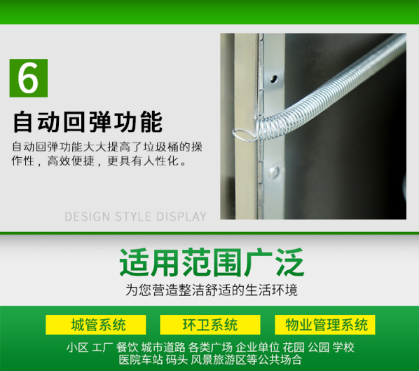 6、配置鍍鋅板或塑膠內(nèi)桶,便于垃圾清倒;