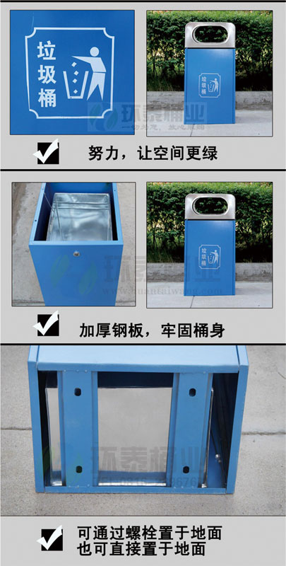 鋼制垃圾桶一種存放垃圾的容器,使用冷軋鋼板或者鍍鋅鋼板制作而成.因為產(chǎn)品表面經(jīng)過噴塑和酸處理,防腐蝕性能更高.采用酸處理+噴塑處理,更利于防銹,增加使用壽命.這是鋼制垃圾箱所具有的強大的優(yōu)勢.