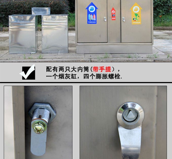 6、配置鍍鋅板或塑膠內(nèi)桶,便于垃圾清倒;