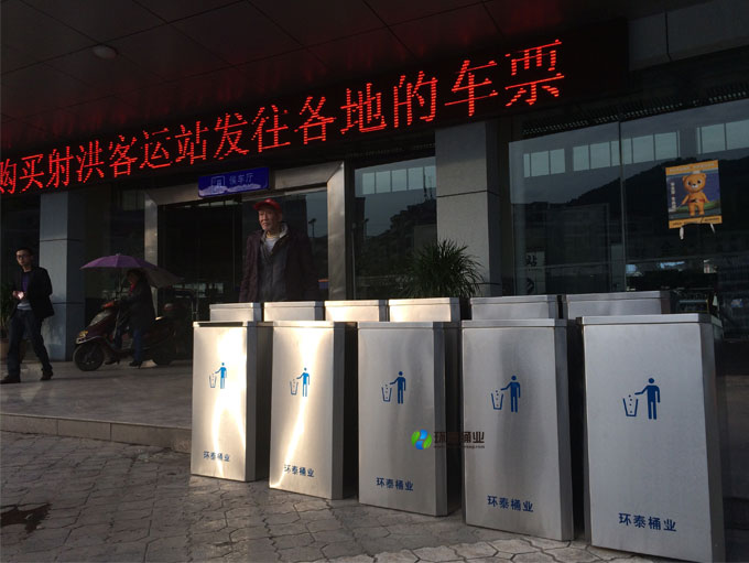 四川省遂寧市射洪縣客運總站在環(huán)泰桶業(yè)采購一批戶外不銹鋼垃圾桶