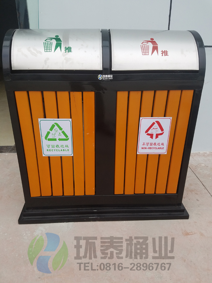 推拉式戶外鋼木垃圾桶
