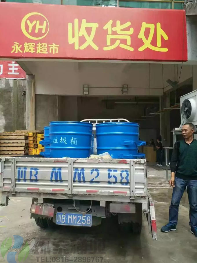 綿陽市梓潼縣永輝超市訂購一批塑料垃圾桶等