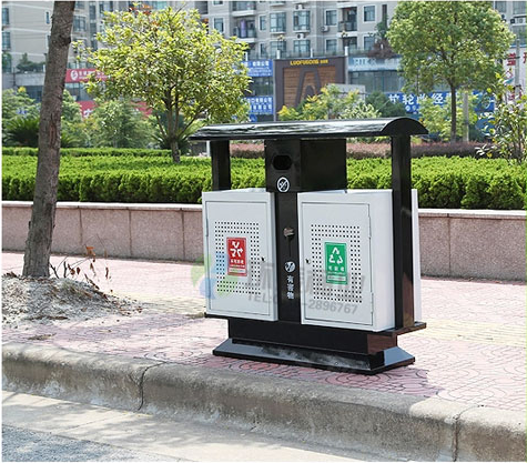 HT-GZ5690,這是一款雙分類鋼制垃圾桶,該產(chǎn)品整體采用優(yōu)質(zhì)的鍍鋅鋼板生產(chǎn)加工而成,產(chǎn)品顏色為:黑灰色,規(guī)格為長(zhǎng)1000mm寬400mm高1000mm,經(jīng)折彎沖壓一次性成型.產(chǎn)品一律用室外粉靜電噴塑,經(jīng)過180°的高溫,限度延長(zhǎng)了垃圾桶的使用壽命,使垃圾桶顏色持久不變,亮麗如新.表面經(jīng)除油——清洗——酸洗——清洗——表調(diào)——磷化——清洗——烘干——靜電粉末噴涂——高溫塑化——冷卻.噴涂粉末,易保潔。