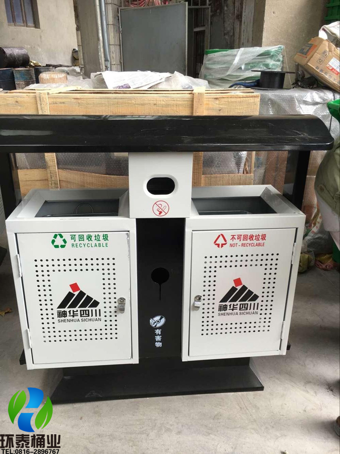 此次位于綿陽的神華四川下屬天明電廠工程順利結(jié)束,為了廠區(qū)環(huán)境衛(wèi)生工作,特意從我司定制了一批戶外分類沖孔鋼制垃圾桶HT-GZ5690。