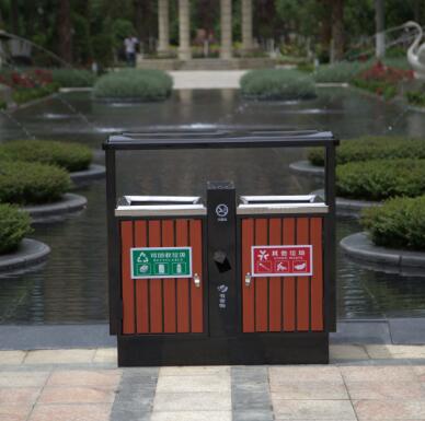 塑木垃圾桶HT-GM002,該產(chǎn)品整體采用優(yōu)質(zhì)的鍍鋅鋼板,塑木,可回收環(huán)保材料生產(chǎn)加工而成,產(chǎn)品顏色為:黑灰色,原木色,規(guī)格為1000*400*980mm,本款塑木分類垃圾桶制造工藝采用:1、鋼木垃圾桶桶身采用優(yōu)質(zhì)進口防腐木、進口山樟木或水曲柳制作,先經(jīng)過烘干脫水、壓刨、打磨、倒角、防腐處理后表面噴涂進口抗紫外線聚脂漆等工序,再經(jīng)高溫噴塑處理,可抑制微生物的寄生、繁殖與蛀蝕,具有防水、防霉等保護功效,能夠抑制霉菌和藻類生物的生長,可有效減少紫外線導(dǎo)致的褪色,延長木材在戶外環(huán)境中的使用壽命.客戶也可以采用塑木代替實木.2、鋼木垃圾箱采用鍍鋅鋼板材質(zhì)制作,鋼結(jié)構(gòu)均經(jīng)過酸洗、磷化表面處理,然后再使用高溫噴塑工藝,使垃圾桶更加經(jīng)久耐用,防腐、防銹,美觀大方.3、鋼木果皮箱采用內(nèi)部膨脹螺栓固定的方式,不易推到,不易被偷盜,使垃圾桶更加安全牢實.隱形固定還可以防止撞傷行人.,