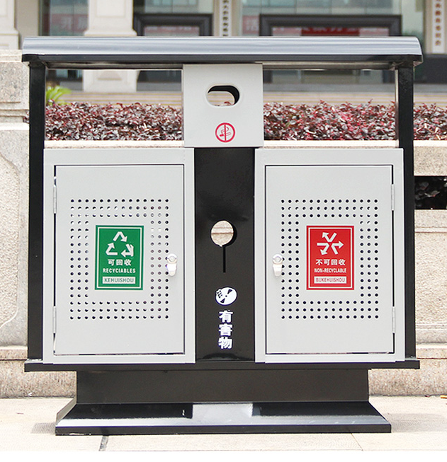 鋼制垃圾桶HT-GZ5690,該產(chǎn)品整體采用優(yōu)質(zhì)的鍍鋅鋼板生產(chǎn)加工而成,產(chǎn)品顏色為:黑灰色,規(guī)格為長1000mm寬350mm高1000mm,本款戶外分類鋼制北京桶整體采用優(yōu)質(zhì)鍍鋅板,經(jīng)折彎沖壓一次性成型.產(chǎn)品一律用室外粉靜電噴塑,經(jīng)過180°的高溫,限度延長了垃圾桶的使用壽命,使垃圾桶顏色持久不變,亮麗如新.表面經(jīng)除油——清洗——酸洗——清洗——表調(diào)——磷化——清洗——烘干——靜電粉末噴涂——高溫塑化——冷卻.噴涂粉末經(jīng)ISO9002質(zhì)量體系認證,易保潔表面光滑之優(yōu)點,不脫落,不起層。,HT-GZ5690鋼制垃圾桶也可按照您的具體需求可定制尺寸和顏色,可印制LOGO及文字