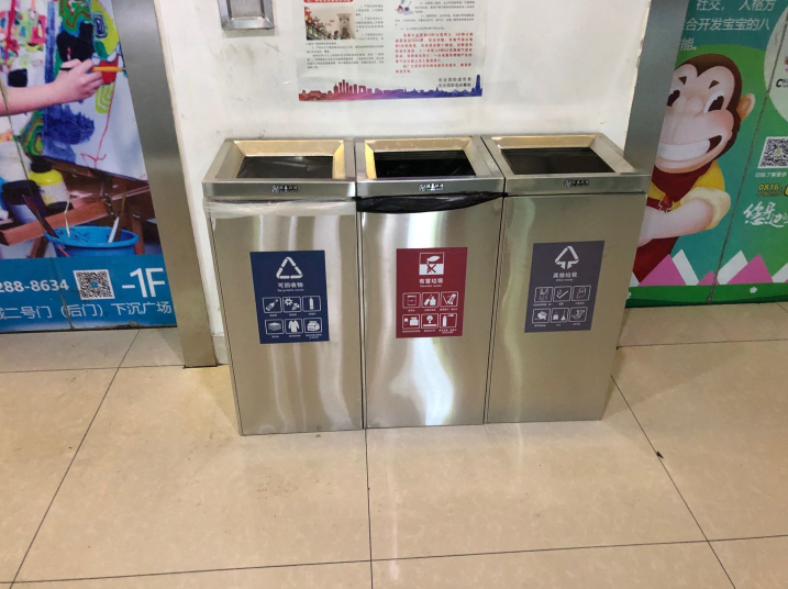 綿陽了樂薈城為響應(yīng)國家垃圾分類行動,在我司特別定制一批不銹鋼垃圾桶HT-BXG1690。