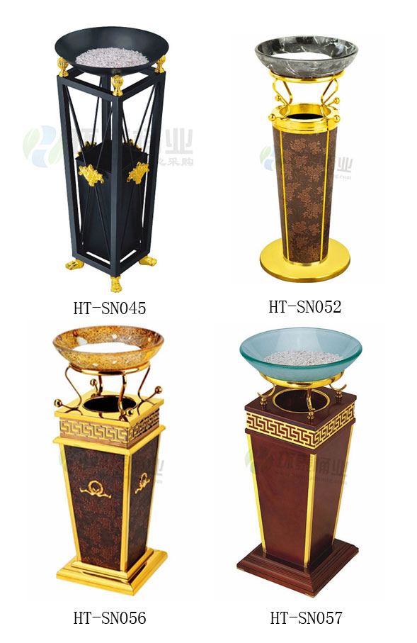 鈦金垃圾桶HT-SN057,該產(chǎn)品整體采用優(yōu)質(zhì)的鍍鋅鋼板,皮紋生產(chǎn)加工而成,產(chǎn)品顏色為:原木色,規(guī)格為直徑340mm高760mm,本款寶鉆酒店室內(nèi)座地垃圾桶采用天然的大理石與優(yōu)質(zhì)冷軋鋼板或不銹鋼鋼板制作而成,四面大理石用鋼板螺絲固定于桶體,有內(nèi)桶,方便提倒垃圾,桶頭煙灰盅可放白石子,石子可清洗.鋼板經(jīng)折彎沖壓一次性成型.產(chǎn)品一律用室外粉靜電噴塑,經(jīng)過180°的高溫,限度延長(zhǎng)了垃圾桶的使用壽命,使垃圾桶顏色持久不變,亮麗如新.表面經(jīng)除油——清洗——酸洗——清洗——表調(diào)——磷化——清洗——烘干——靜電粉末噴涂——高溫塑化——冷卻.噴涂粉末經(jīng)ISO9002質(zhì)量體系認(rèn)證,產(chǎn)品易保潔表面光滑之優(yōu)點(diǎn),不脫落,不起層,HT-SN057鈦金垃圾桶也可按照您的具體需求可定制尺寸和顏色,詳見說明或咨詢客服.環(huán)泰愿為環(huán)保護(hù)航,一切為您,放心采購(gòu)。
