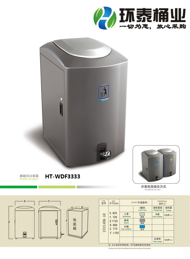 ,HT-WDF3333德瀾仕垃圾桶也可按照您的具體需求僅定制顏色,可印制LOGO及文字,詳見說(shuō)明或咨詢客服.環(huán)泰愿為環(huán)保護(hù)航,一切為您,放心采購(gòu)。