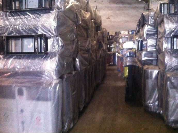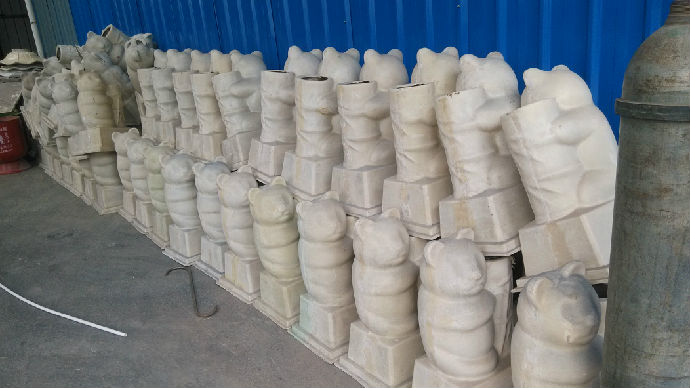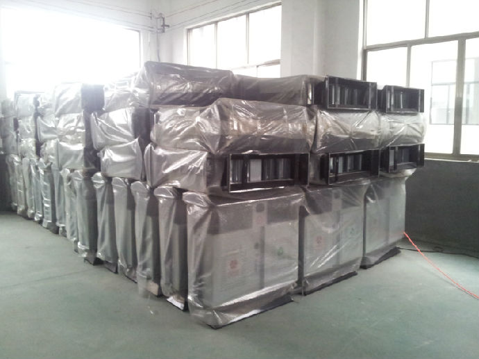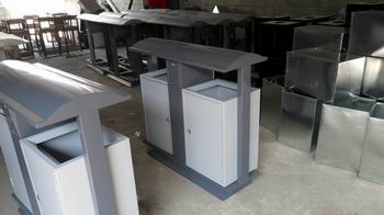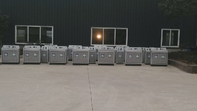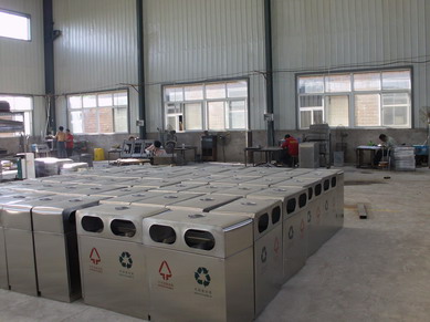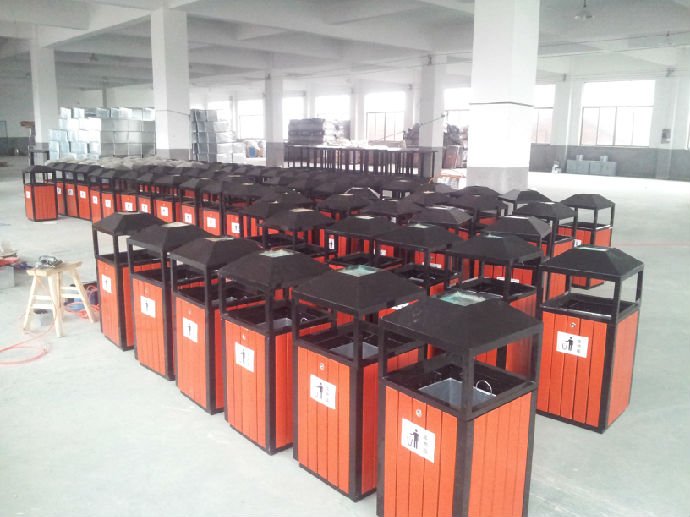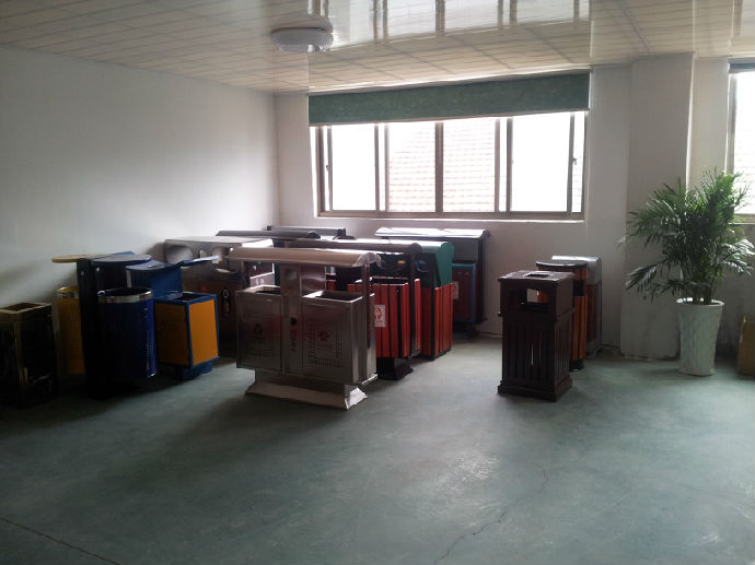 工廠擺放整齊的廣告垃圾桶展示區(qū)