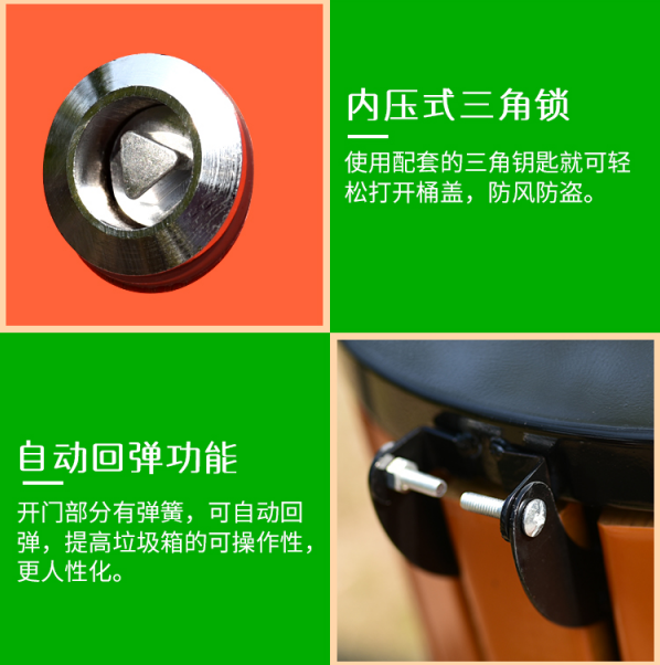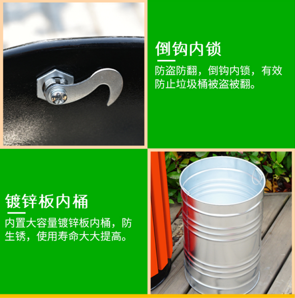 7、通常配有鍍鋅鋼板內(nèi)桶,方便垃圾收集清倒與清潔.