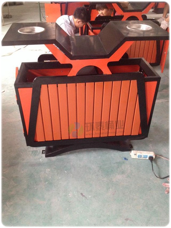 鋼木垃圾桶HT-GM6190,該產品整體采用優(yōu)質的冷軋鋼板,鍍鋅鋼板,防腐木生產加工而成,產品顏色為:黑色+原木色,規(guī)格為長1000mm寬420mm高920mm,本款翼型木條分類果皮箱制造工藝采用:1、鋼木垃圾桶桶身采用優(yōu)質進口防腐木、進口山樟木或水曲柳制作,先經過烘干脫水、壓刨、打磨、倒角、防腐處理后表面噴涂進口抗紫外線聚脂漆等工序,再經高溫噴塑處理,可抑制微生物的寄生、繁殖與蛀蝕,具有防水、防霉等保護功效,能夠抑制霉菌和藻類生物的生長,可有效減少紫外線導致的褪色,延長木材在戶外環(huán)境中的使用壽命.客戶也可以采用塑木代替實木.2、鋼木垃圾箱采用鍍鋅鋼板材質制作,鋼結構均經過酸洗、磷化表面處理,然后再使用高溫噴塑工藝,使垃圾桶更加經久耐用,防腐、防銹,美觀大方.3、鋼木果皮箱采用內部膨脹螺栓固定的方式,不易推到,不易被偷盜,使垃圾桶更加安全牢實.隱形固定還可以防止撞傷行人.