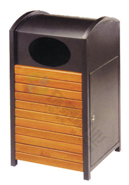 側(cè)投口帶蓋方形鋼木垃圾桶HT-GM6790