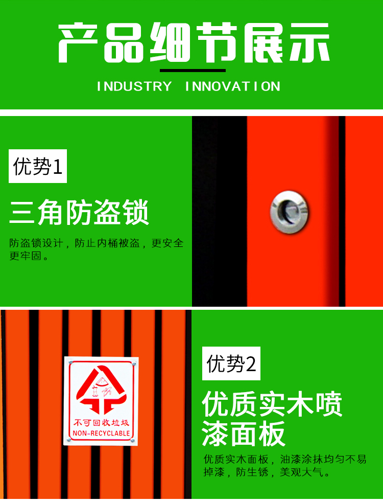 7、通常配有鍍鋅鋼板內(nèi)桶,方便垃圾收集清倒與清潔.
