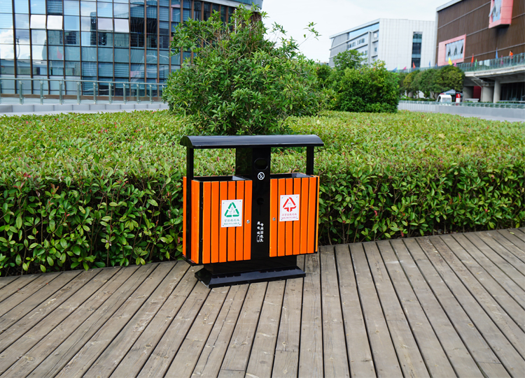 鋼木垃圾桶HT-GM6870,該產(chǎn)品整體采用優(yōu)質(zhì)的鍍鋅鋼板,防腐木生產(chǎn)加工而成,產(chǎn)品顏色為:架子黑色+木條原色,規(guī)格為長(zhǎng)1000mm寬350mm高1000mm,本款戶外鋼木分類垃圾桶制造工藝采用:1、鋼木垃圾桶桶身采用優(yōu)質(zhì)進(jìn)口防腐木、進(jìn)口山樟木或水曲柳制作,先經(jīng)過(guò)烘干脫水、壓刨、打磨、倒角、防腐處理后表面噴涂進(jìn)口抗紫外線聚脂漆等工序,再經(jīng)高溫噴塑處理,可抑制微生物的寄生、繁殖與蛀蝕,具有防水、防霉等保護(hù)功效,能夠抑制霉菌和藻類生物的生長(zhǎng),可有效減少紫外線導(dǎo)致的褪色,延長(zhǎng)木材在戶外環(huán)境中的使用壽命.客戶也可以采用塑木代替實(shí)木.2、鋼木垃圾箱采用鍍鋅鋼板材質(zhì)制作,鋼結(jié)構(gòu)均經(jīng)過(guò)酸洗、磷化表面處理,然后再使用高溫噴塑工藝,使垃圾桶更加經(jīng)久耐用,防腐、防銹,美觀大方.3、鋼木果皮箱采用內(nèi)部膨脹螺栓固定的方式,不易推到,不易被偷盜,使垃圾桶更加安全牢實(shí).隱形固定還可以防止撞傷行人.