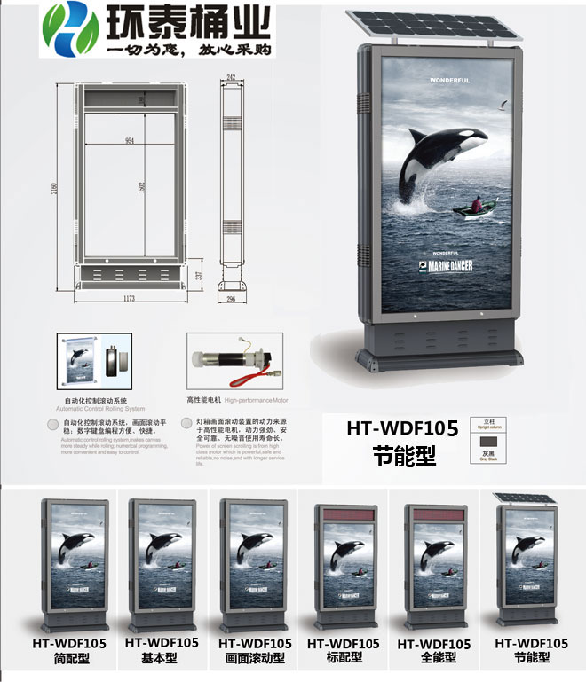 德瀾仕鋼制廣告垃圾箱(節(jié)能型)HT-WDF105