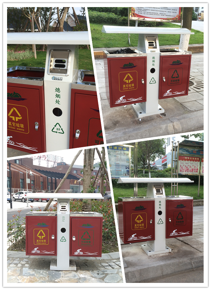 鋼制垃圾桶HT-GZ1668,該產(chǎn)品整體采用優(yōu)質(zhì)的鍍鋅鋼板生產(chǎn)加工而成,產(chǎn)品顏色為:紅色,規(guī)格為長(zhǎng)960mm寬460mm高1000mm,本款戶外分類鋼制垃圾桶本款戶外分類沖孔鋼制垃圾桶整體采用優(yōu)質(zhì)鍍鋅板,經(jīng)折彎沖壓一次性成型.產(chǎn)品一律用室外粉靜電噴塑,經(jīng)過(guò)180°的高溫,限度延長(zhǎng)了垃圾桶的使用壽命,使垃圾桶顏色持久不變,亮麗如新.表面經(jīng)除油——清洗——酸洗——清洗——表調(diào)——磷化——清洗——烘干——靜電粉末噴涂——高溫塑化——冷卻.噴涂粉末經(jīng)ISO9002質(zhì)量體系認(rèn)證,易保潔表面光滑之優(yōu)點(diǎn),不脫落,不起層。,HT-GZ1668鋼制垃圾桶也可按照您的具體需求可印制LOGO及文字,詳見說(shuō)明或咨詢客服.環(huán)泰愿為環(huán)保護(hù)航,一切為您,放心采購(gòu)。