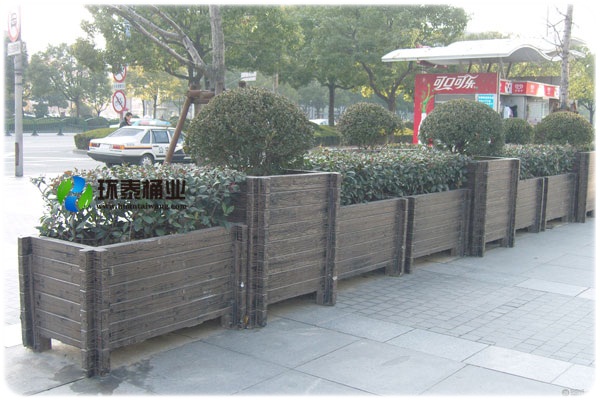 公路旁邊黑色連體防腐木花箱