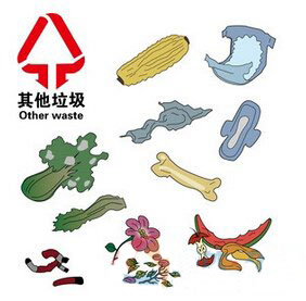 四、其他垃圾(Other waste) 其他垃圾包括除上述幾類垃圾之外的磚瓦陶瓷、渣土、衛(wèi)生間廢紙、紙巾等難以回收的廢棄物,采取衛(wèi)生填埋可有效減少對地下水、地表水、土壤及空氣的污染。 根據(jù)上述分類,那么分類垃圾桶的標志也就相應(yīng)地分成以下四種,如圖所示:
