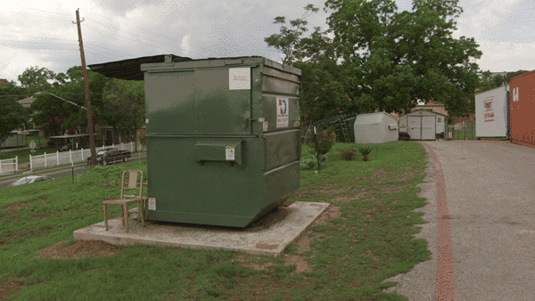 于是,為了將垃圾箱打造得更宜居,Jeff先在里邊鋪了一塊假地板,把地板下面放上許多個(gè)小格子,作為儲(chǔ)物的地方,地板上邊則作為活動(dòng)的場(chǎng)所。他把箱體內(nèi)壁全部刷白,擺上了小家具和盆栽,裝上了空調(diào)。