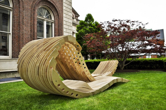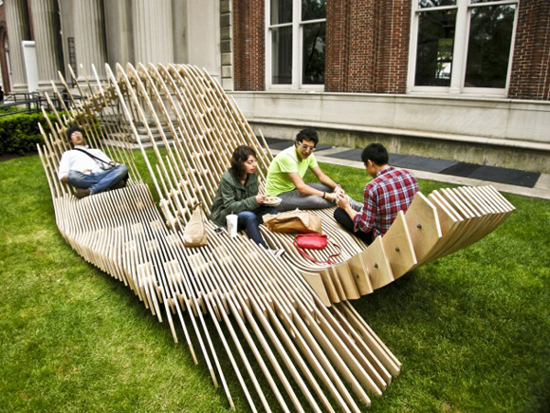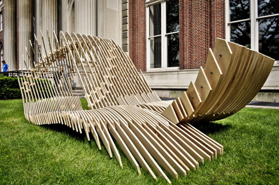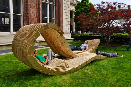 較大的空間將為更多人提供休閑空間,也是一個沉思學習的好地方,這款休閑椅以建筑雕刻體現(xiàn)形體的空間感,安放在公園綠地或者學校綠地上是一個非常吸眼球的物體,眾多的木條疏密有秩排列,形成了一種高低起伏的動感,無論你從哪個角度去看它都是非常有趣的,其占地空間小,外型上給人創(chuàng)造了一個視覺通透性,坐位設計也比較的舒服和人性化,草得綠色與木頭的色彩搭配和諧自然。