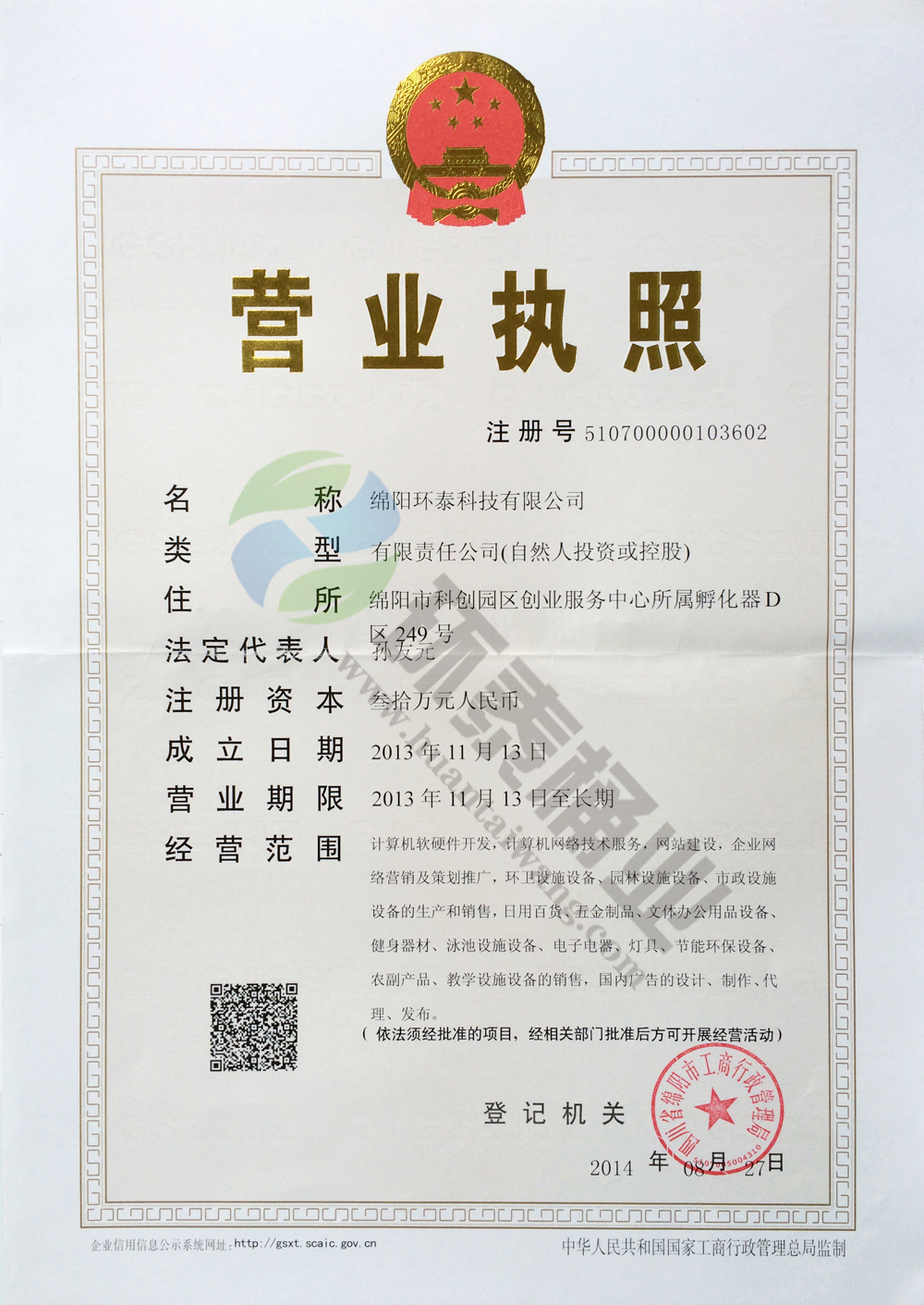 環(huán)泰營(yíng)業(yè)執(zhí)照(正本)